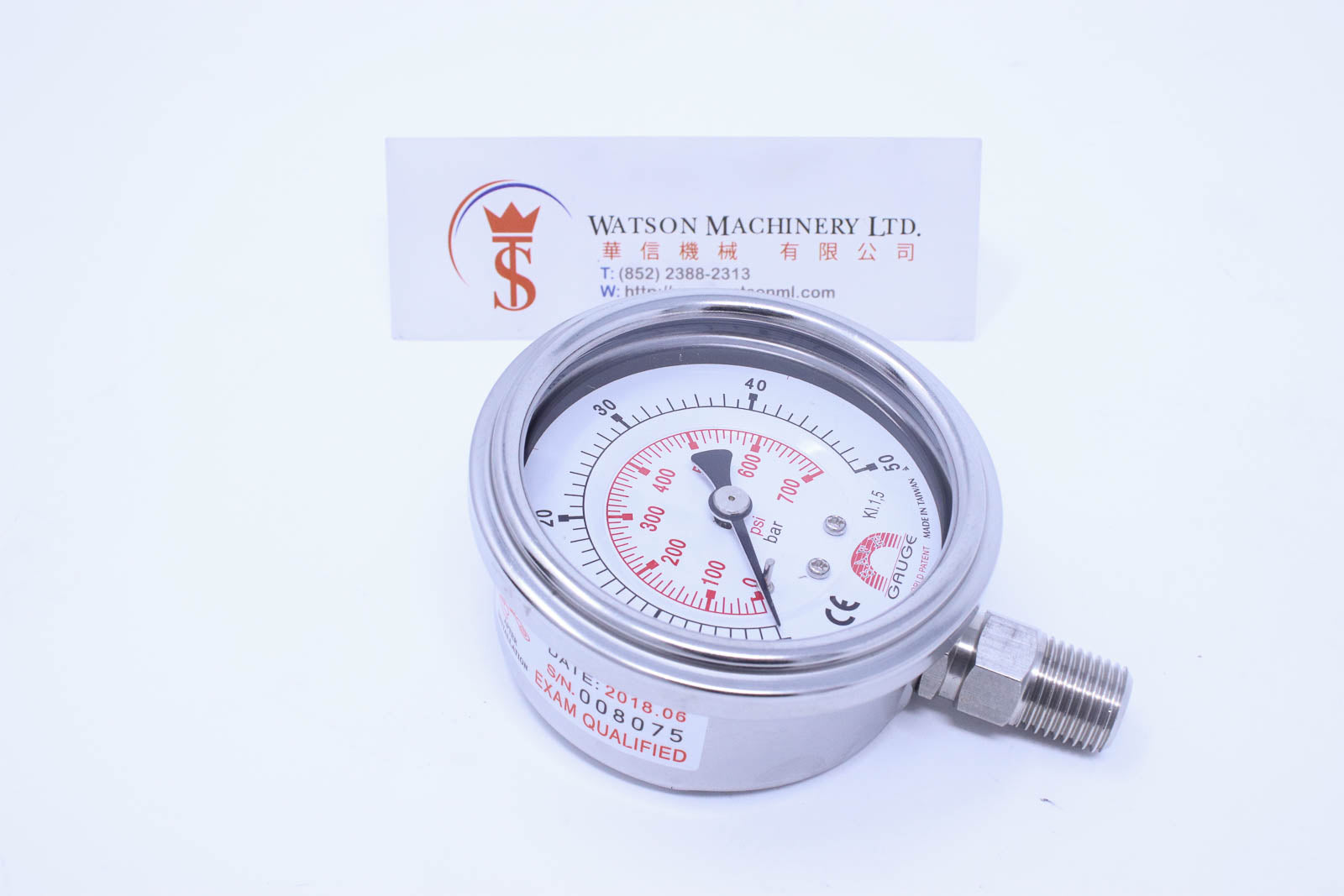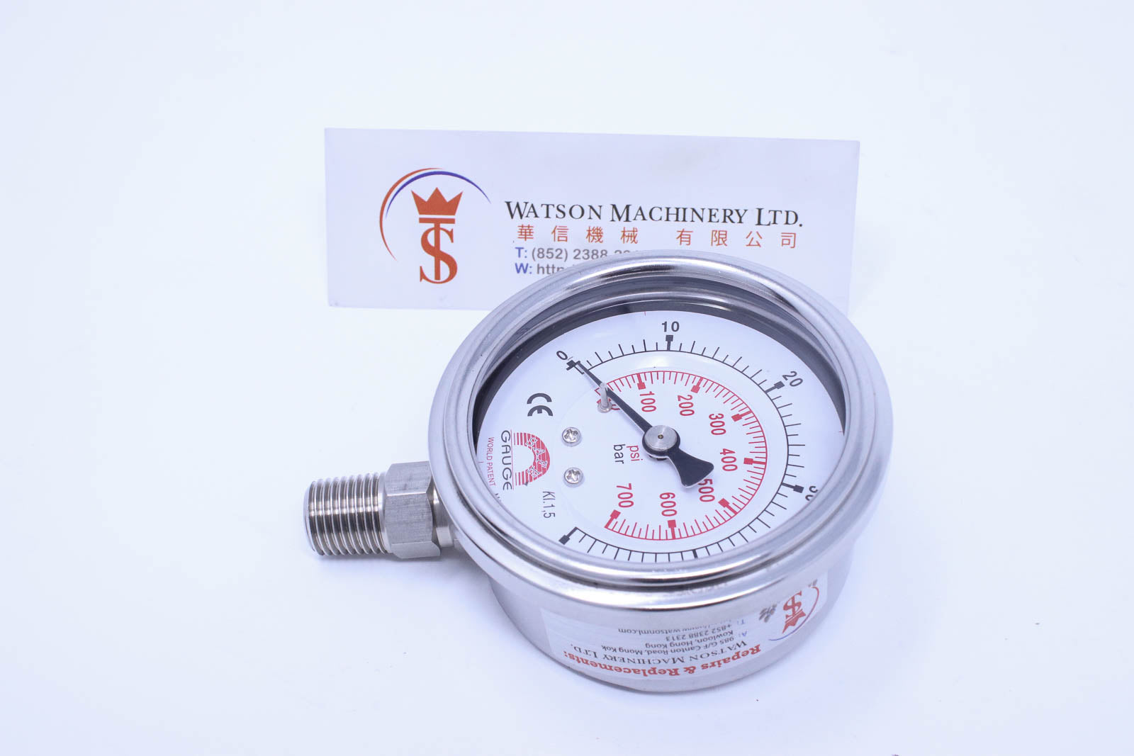 Watson Stainless Steel 50K Bottom Connection Pressure Gauge 50bar